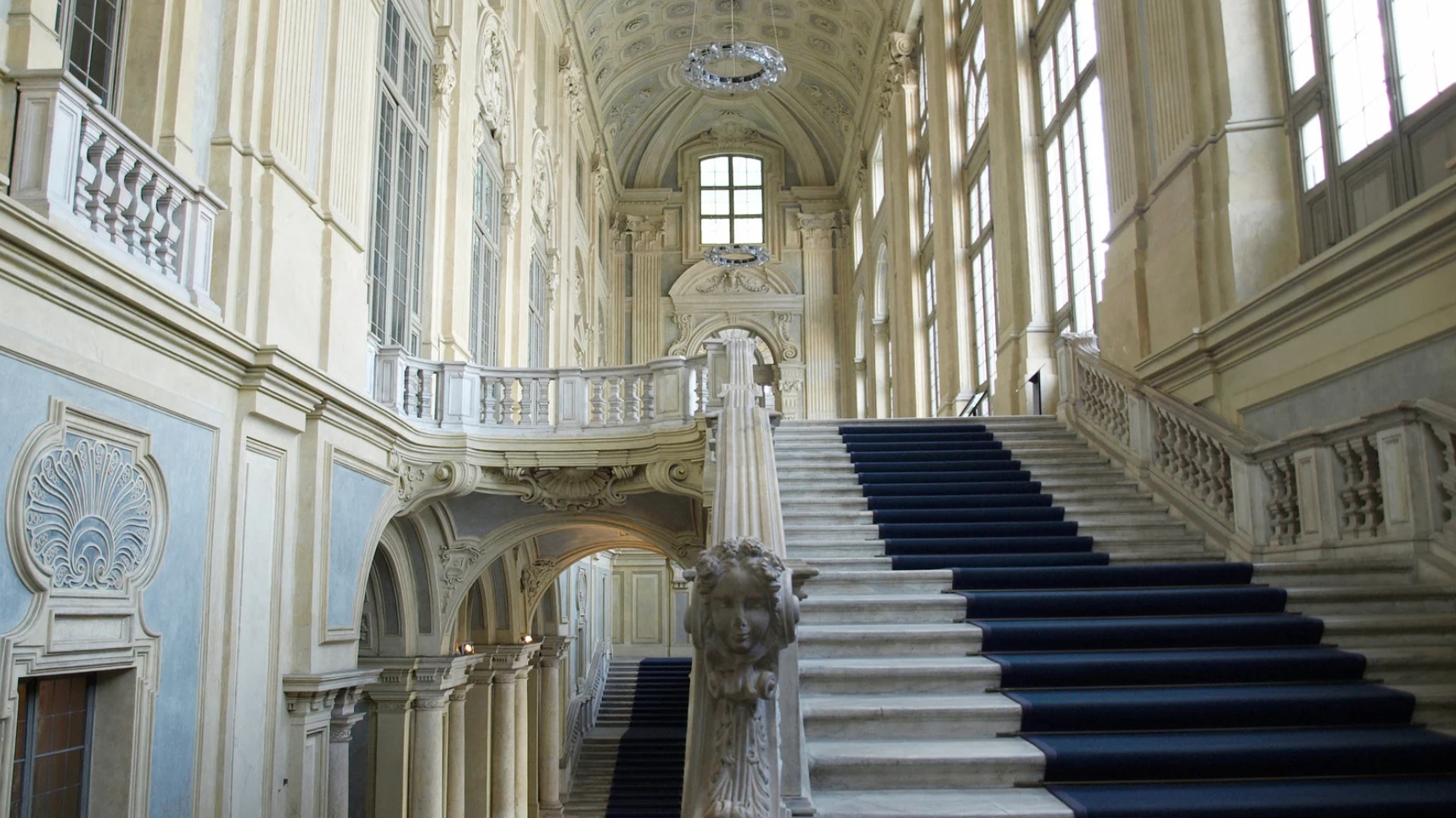 La véritable pièce maîtresse de cette rénovation reste sans conteste l’escalier d’honneur monumental situé derrière cette nouvelle façade. Juvarra a dessiné des volées de marches d’une légèreté apparente déconcertante, inondées de lumière naturelle grâce à d’immenses baies vitrées. Les jeux d’ombres et de clarté subliment les stucs délicats et les voûtes élancées. L’ascension de cet escalier tenait lieu de véritable représentation théâtrale pour les invités de la cour, préparant leur esprit à l’émerveillement des salles de réception.